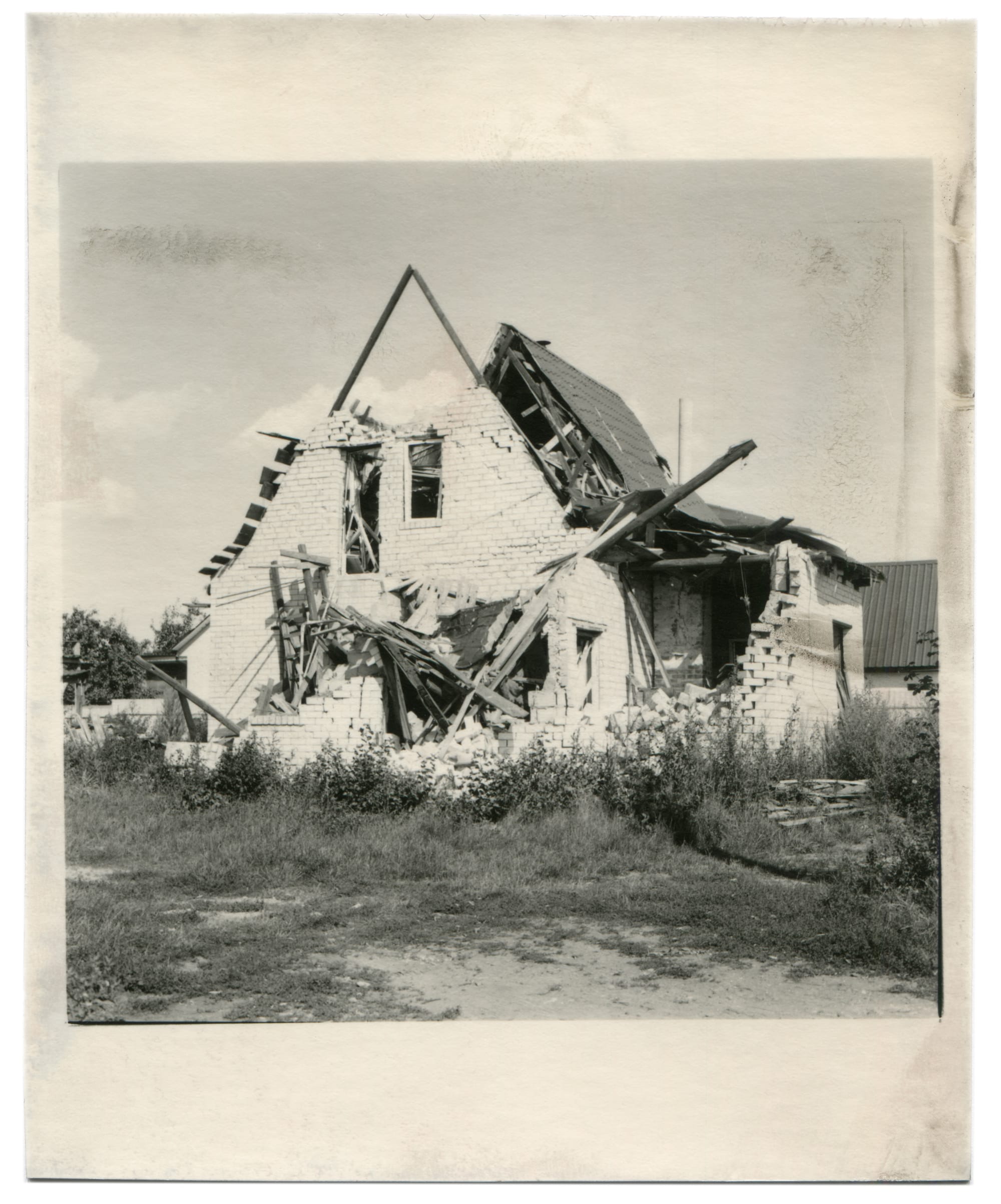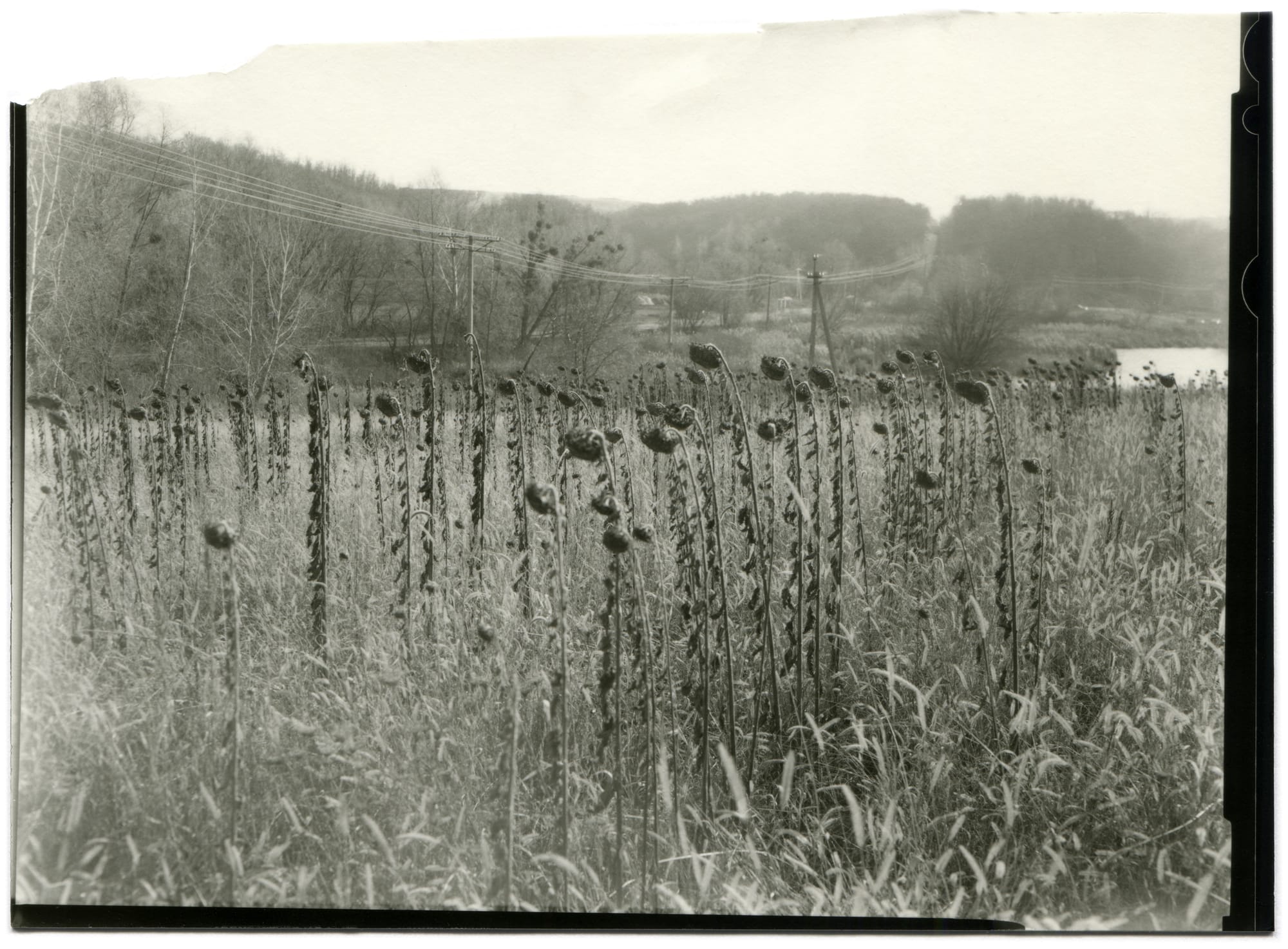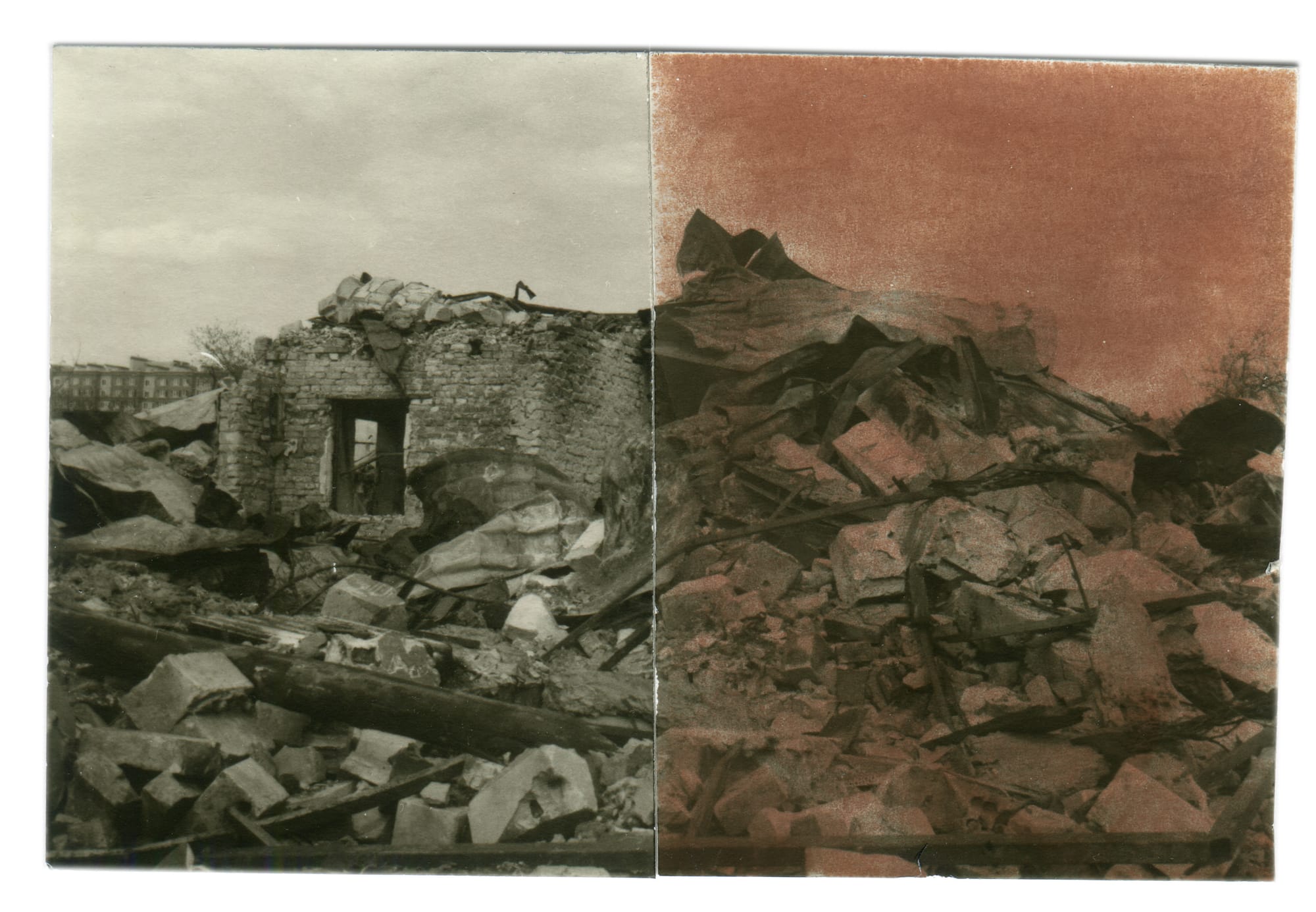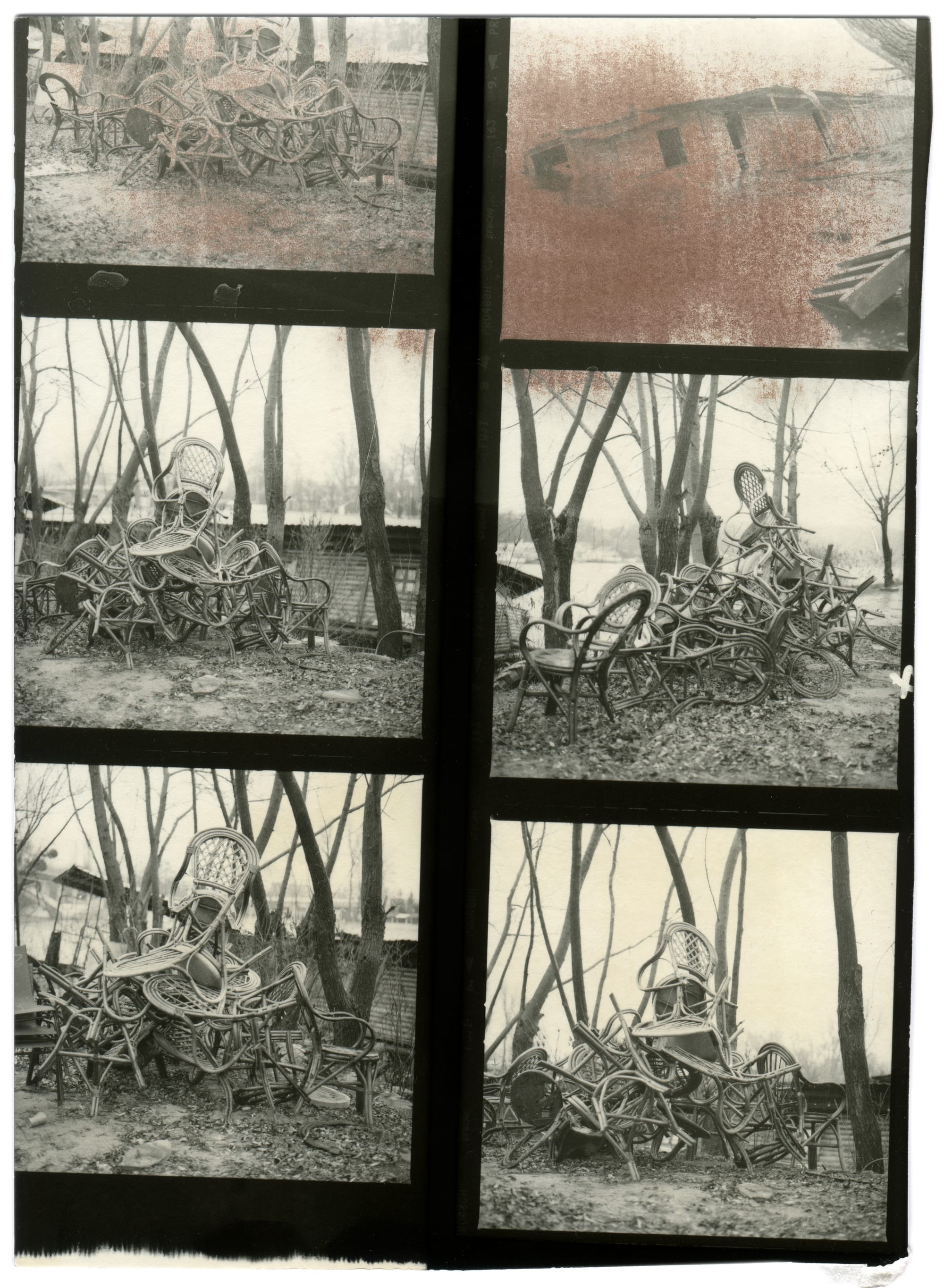 Consisting of pictures of war-torn places shot in 2022 in Ukraine, the series also includes the ones printed from a vast archive of ten years. Hearing the roaming of air raid sirens, the palm-sized pictures were printed under the red safelight in Bakin’s makeshift darkroom in his Kyiv apartment. The uncertainty, unease, and fragility, but also beauty and tenderness, became the main essence of the series.